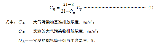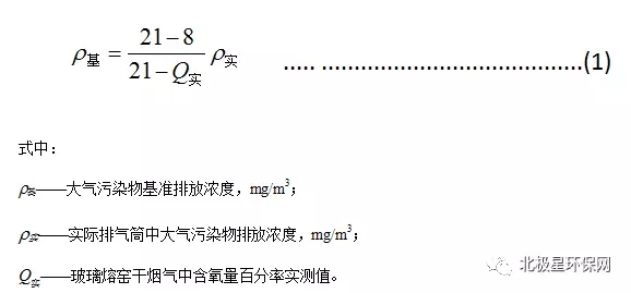 1.4 對于玻璃熔窯排氣(純氧燃燒除外),應同時對排氣中含氧量進行監(jiān)測,實測排氣筒中大氣污染物排放濃度應按式(1)換算為含氧量為8%狀態(tài)下的基準排放濃度,并以此作為排放是否達標的依據(jù)。其他車間或生產(chǎn)設施排氣按實測濃度計算,但不得人為稀釋排放。