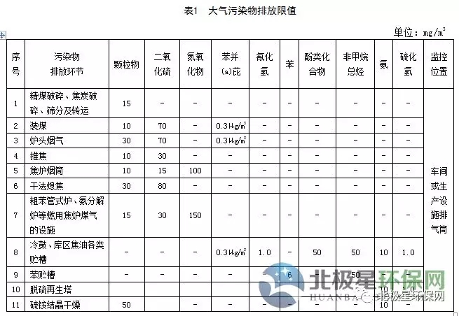 煉焦化學工業(yè)大氣污染物排放標準
