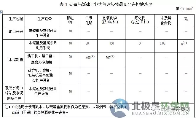 1.2 自本標準實施之日起,新建企業(yè)執(zhí)行表1規(guī)定的大氣污染物最高允許排放濃度。