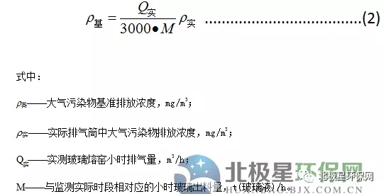 1.5 純氧燃燒玻璃熔窯應監(jiān)測排氣筒中大氣污染物排氣濃度、排氣量及相應時間的玻璃出料量,按式(2)計算基準排放量[3000m3/t(玻璃液)]條件下的基準排放濃度。并以此作為判定排放是否達標的依據(jù)。大氣污染物排放濃度、排氣量、產(chǎn)品產(chǎn)量的監(jiān)測、統(tǒng)計周期為1h,可連續(xù)采樣或等時間間隔采樣獲得大氣污染物排放濃度和排放氣量數(shù)據(jù),玻璃出料量數(shù)據(jù)以企業(yè)統(tǒng)計報表為依據(jù)。